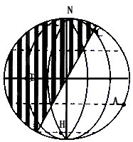5、综合题 读图,阴影部分表示黑夜,回答下列问题。