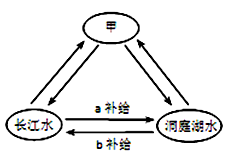 【小题2】甲水体与长江水和洞庭湖水之间有相互补给关系。冰川水、海洋水与这两种水体之间都没有互补关系,故选B。