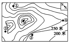4、单选题 下图为某地区等高线(单位:米)地形图。读图回答1—2题。