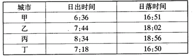 3、单选题 表为某日我国四个城市日出日落时间(北京时间)表,读后回答各题: