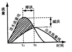 4、单选题  水库具有多种功能,如防洪、发电、灌溉、养殖等,并且能改善局部地区的气候。该图是某水库洪水时径流调节示意图,读图回答问题。