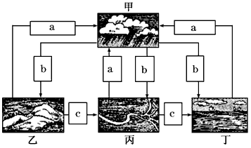 (1)写出图中乙、丙处的地质构造类型:乙 ;丙 。(4分)