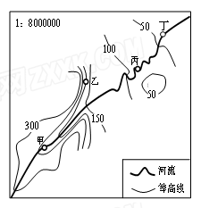 4、单选题 图为“我国南方某河流附近等高线示意图”,读图完成题。