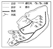 小题1:图中甲、乙、丙、丁四处港口,条件最好的是( )