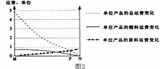 1、单选题 原料、燃料和产品的运输费用是生产成本的重要组成部分。图2为在M、N两地间建设的某工厂的运费变化图。据图回答3—4题