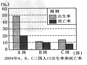 (1)图1中,A、B、C三国人口自然增长率与我国人口自然增长率(2004年约6‰)相似的是_______国。?