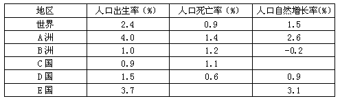 4、综合题 读世界及一些国家的人口数据表,完成下列问题。