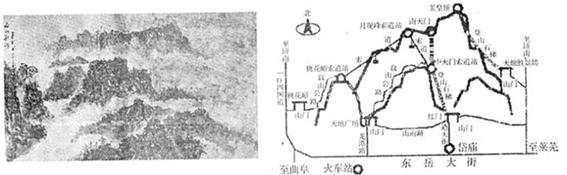 4、综合题 (10分)泰山号称“五岳之首”是我国著名的旅游胜地。下面为泰山云海景观图和泰山旅游线路示意图,读图回答下列问题。