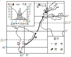 (1)一艘轮船由①市启航,沿图中箭头所示航线航行,到达②市的过程中以 (填“顺”或“逆”)洋流为主,其中甲处附近洋流对沿岸地区气候的影响是 。