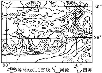 (3)图中峡谷地区为雅鲁藏布大峡谷,这里是西南暖湿气流进入青藏高原腹地的重要水汽通道,西南季风受地形阻挡抬升,形成丰富的地形雨。4分