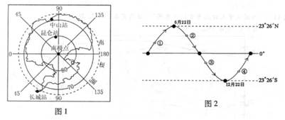 参考答案:B 本题解析:本题考查地球内部圈层。科学家通过地震波在地球内部传播速度的变化来研究地球的内部结构。 本题难度:一般 3、单选题 某地水平运动物体的方向左偏,且一年有两次太阳直射,该地位于: 参考答案:D 本题解析:某地水平运动物体的方向左偏说明该地在南半球,一年有两次太阳直射说明该地在赤道与南回归线之间。答案选D。 本题难度:一般 4、单选题 中亚不与我国相邻的国家是 参考答案:C 本题解析:本题考查世界区域地理。土库曼斯坦不是我国的陆上邻国。 本题难度:简单 5、单选题 2010年11月11日我国极地科考船“雪龙”号从其母港——位于上海浦东外高桥港区的中国极地科考码头启航,前往深圳,开始其第27次南极之行。计划于2011年4月初返回国内。结合下图,图1为“我国三个南极科学考察站分布示意图”,图2为“太阳直射点回归运动示意图”,完成问题。 参考答案:1. C 本题解析:试题分析: 本题难度:简单 |