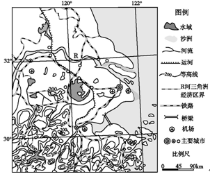 5、综合题 如图示意中国东部某区域。阅读图文材料,回答下列问题: