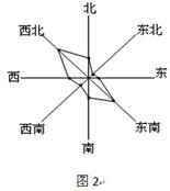 A.人口分布状况 B.水源条件 C.主要变通线走向 D.地形因索 3、单选题 图2为某城镇多年平均风频图,判断问题。 |