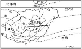 3、单选题 读海南岛图(图中虚线为等温线,岛内封闭实线为等高线),完成问题。