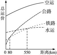 (1)选择最佳运输方式:运距< 80千米时________;运距80—550千米时________;运距>550千米时________;运距长、贵重急需,体积、重量小,采用________。