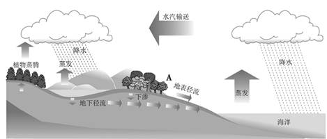 【小题2】若在图中A处植被下游增加草场和树木的覆盖率,则水循环及各环节中