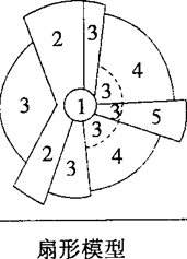 2、单选题 下面扇形图为美国芝加哥大学学者提出的“城市内部地域结构模型图”,读图后回答后面2道题目。