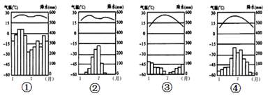 小题1:导致沿途①和④两地气候差异最主要的因素是