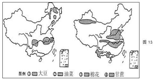 3、多选题 根据我国农业部2003年2月的《优势农产品区域布局规划》,四种农作物的优势生产区域如图12所示。读图并结合所学知识回答下面问题。