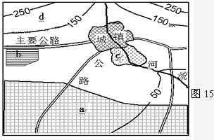 4、单选题 图15为我国东南沿海某城镇周围农业分布示意图,该城镇周围分布有种植业、花卉业、乳畜业和果林业。读图完成37~38题。