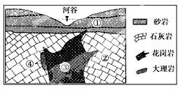 本题解析:有示意图可知:①为褶皱,为地壳的水平运动使岩层弯曲变形而成,属于内力作用,②为风蚀蘑菇,为风力侵蚀作用形成的,属于外力作用,③为流水沉积形成的河口三角洲,也为外力作用,④为断层,成因为地壳运动产生的强大压力或张力,超过了岩层所能承受的强度,岩层发生断裂,并沿断裂面发生明显的位移,形成的,属于内力作用。