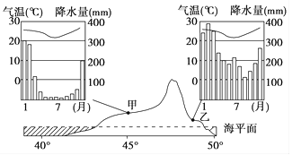【小题2】甲地比乙地降水量小的主要原因是 ( )