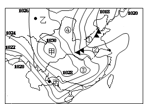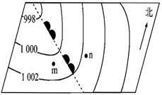 5、单选题 该图是北半球某地区某一时段近地面天气模式示意图(单位:百帕)。