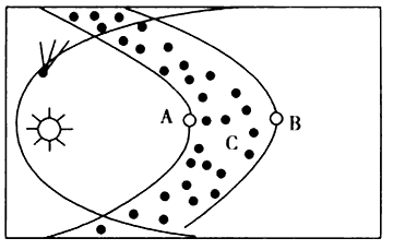3、单选题 ? 2008年8月24日,历时16天的第29届北京奥运会落幕,在国际小行星中心24日发布的新小行星命名公报中,“北京奥运星”赫然在列。“北京奥运星”在轨道上平均每天以147.6万千米的高速运行,绕太阳一周需5.3年。联系所学知识,完成1—2题。