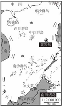 4、单选题 黄岩岛和南沙群岛历来都是中国领土的一部分,中华人民共和国对这些岛屿及其附近海域拥有无可争辩的主权。读“南沙部分岛礁和黄岩岛地图”,完成下列各题。