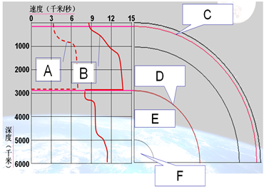 (2)A、B两种地震波大约在地下33千米处传播速度明显加快,从而发现了C 不连续面。