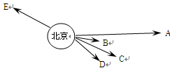 5、单选题 图为俄美朝韩日五国首都与北京相对方位及距离示意图。