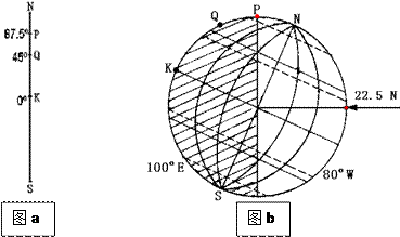 本题解析:1.据条件及题中信息将文字内容转绘成图a据新画的图示可知是北半球夏季,太阳直射点在22.5°N。