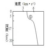 1.图中曲线表示的地震波是2.图中①处上下两侧名称分别为