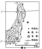 4、单选题 北京时间2011年3月11日下午1时46分,日本东北部宫城县以东太平洋海域发生里氏9.0级地震并导致福岛第一核电站发生核泄漏。读图6,完成问题。