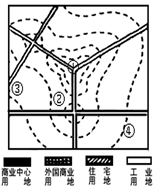 4、单选题 读某城市地租分布等值线示意图,回答1—4题。