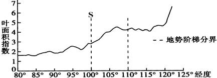 1.分界线S以西区域内叶面积指数偏低的最主要原因是该区域2.分界线S以东区域内叶面积指数的空间变化体现了