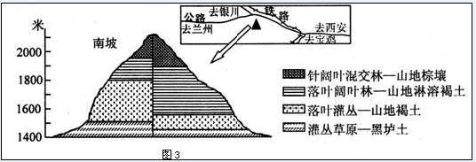 1.该山地分布在:2.北坡比南坡:3.图^91考试网路: