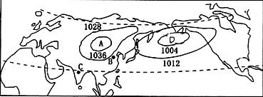 1、综合题 读“北半球1月份部分地区等压线分布图”,回答下列问题:(11分)