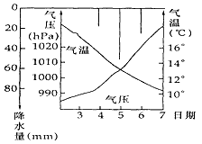 3、单选题 据温州市11月5日前后几天的天气变化资料统计图,回答1—3题。
