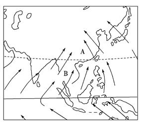 【小题1】图示南纬10-20间,澳大利亚西北部;北半球的东北信风由于太阳直射点南移而南移到南半球,受南半球地转偏向力的影响形成西北风,从海洋带来大量水汽,形成降水。选B正确。
