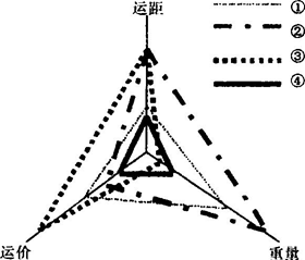 3、单选题 下图表示四类货物生产运输过程中的相关特征。读图回答小题。