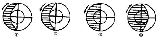 A.太阳直射23°N B.南极点太阳高度为23° C.北极地区适宜科考 D.济南昼长夜短 5、单选题 读下图,阴影表示夜半球,内圆表示极圈,中心表示极点,箭头表示地球自转方向,其中日期相同的是(?) |