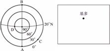 5、综合题 下面左图是“北京时间为某日10时的太阳高度分布示意图”,图中粗线为等太阳高度线,读后请完成下列问题。