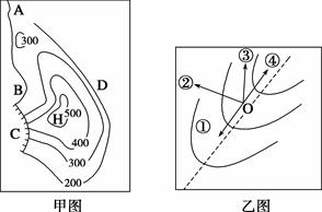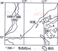 A.河流先向南流,再向西南流 B.若两山顶间建游览索道,其长度应不小于1250米 C.陡崖处可观赏到瀑布景观 D.B地可见V型峡谷,C地可见冲积扇 |