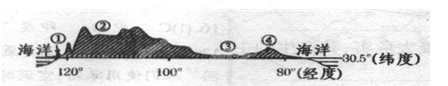 5、单选题 下图为世界某大陆地形剖面图,分析判断完成3题