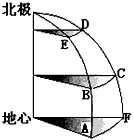 2、春、秋分日,图中A—F各点中,与B点昼长相同而地方时不相同的有