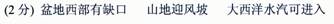 本题解析:(1)根据地理位置和等温线的特征分析地形。(2)地形对降水的影响,迎风坡降水丰富,背风坡降水少。(3)E处等温线弯曲受地形的影响;F等温线与海岸线平行于海洋有关。