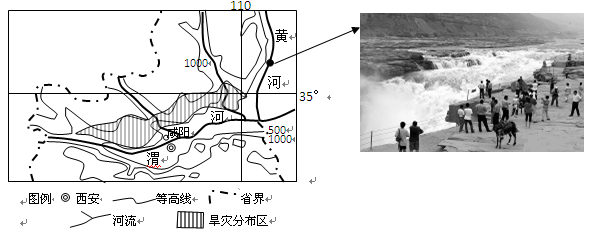5、综合题 (9分)黄河壶口瀑布位于黄土高原深处的两省交界处。读中国部分区域图,回答下列问题。