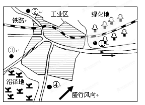小题1:从环境保护角度考虑,化工厂适宜布局在图中的