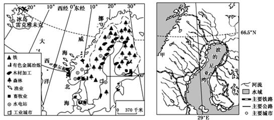 小题1:该区域木材加工业主要沿波的尼亚湾沿岸分布,其考虑的主导因素是(?)